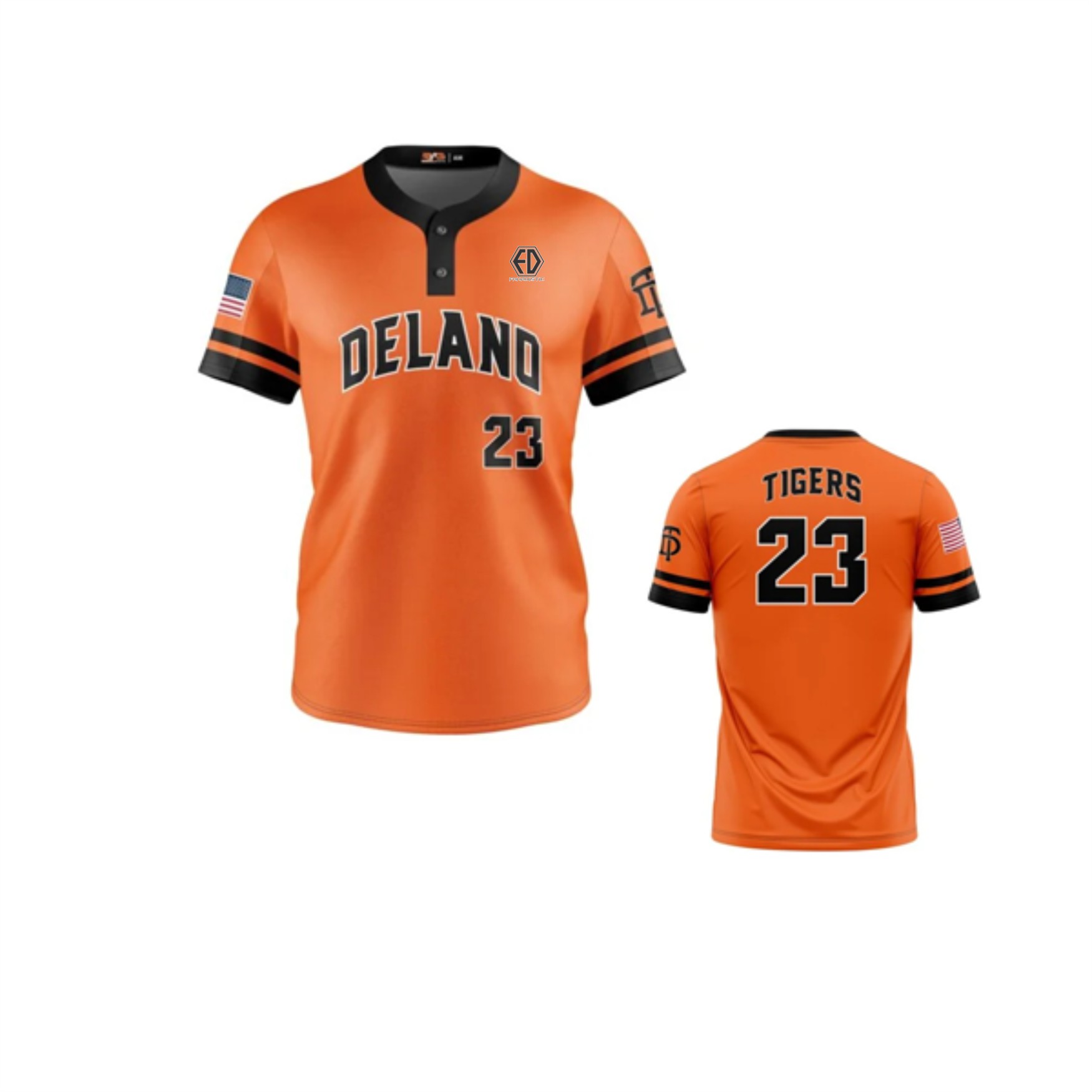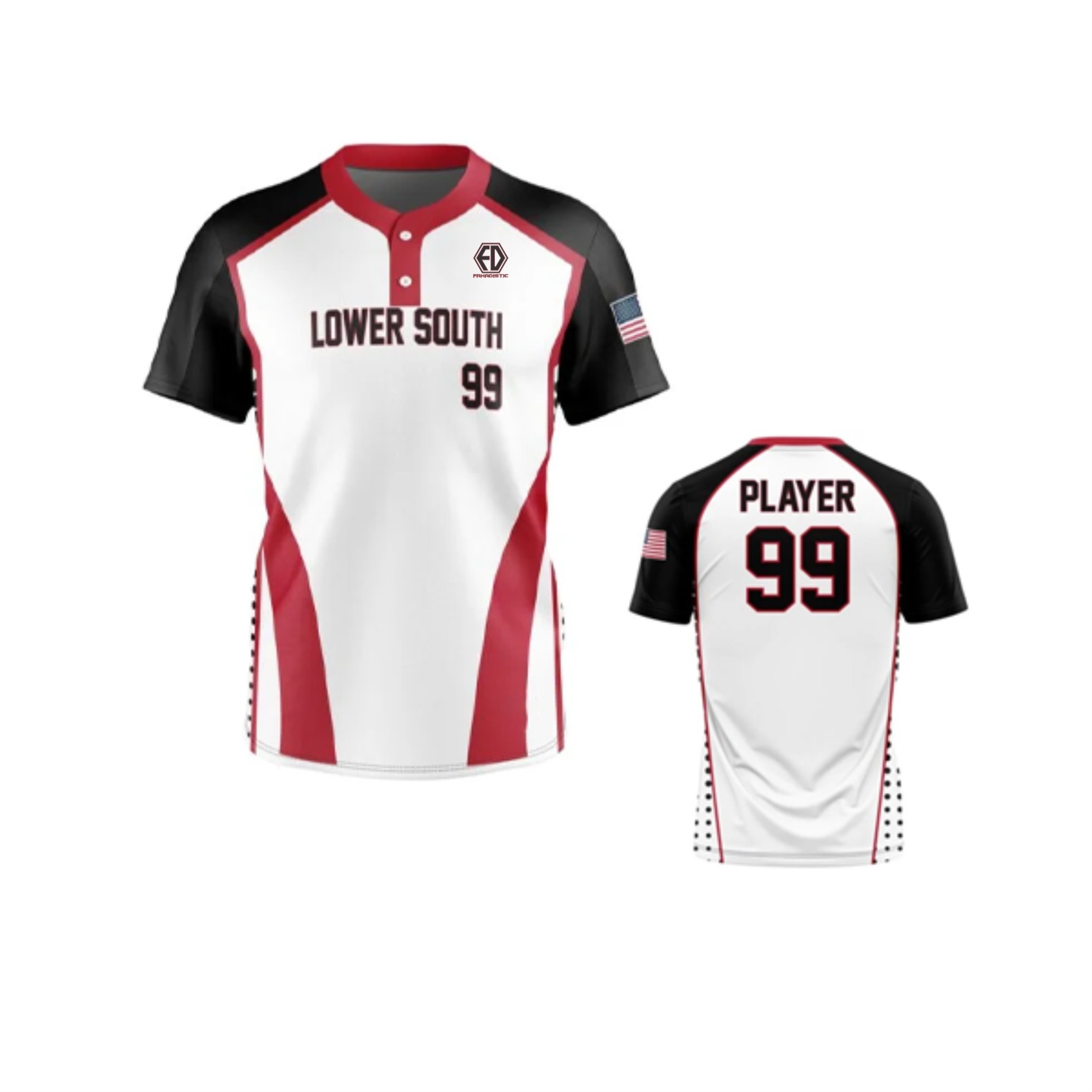Full Dye Sub Baseball/Softball Two Button Short Sleeve Pullover Jersey – Varsity Pattern – Adult/Youth